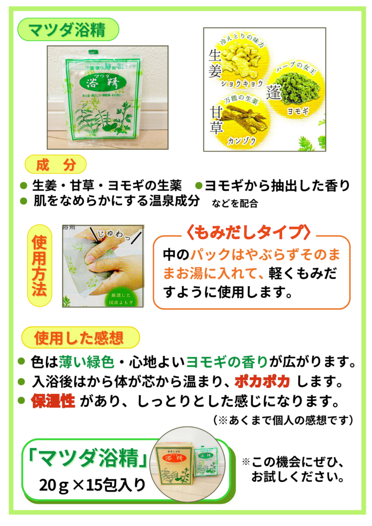 【「マツダ浴精」薬草入浴剤のご紹介】