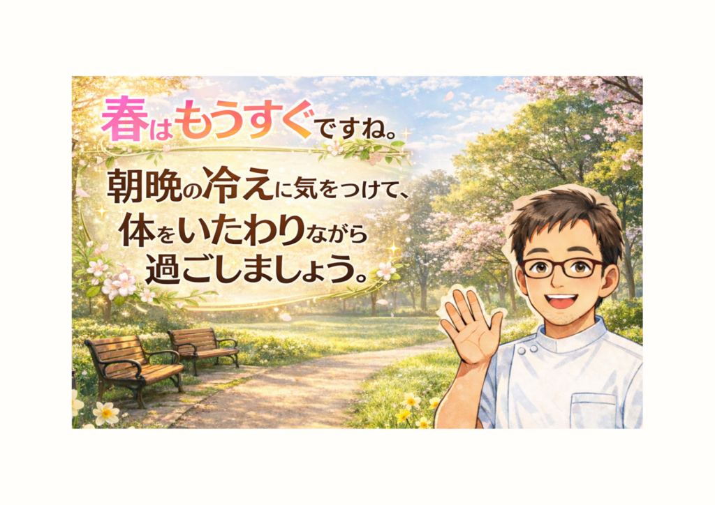 この季節は寒暖差の影響で、筋肉や関節に負担がかかりやすく、知らないうちに疲れがたまりがちです。無理をせず、冷え対策を意識しながら、普段より少しだけ体をいたわる時間を持ってみてください。